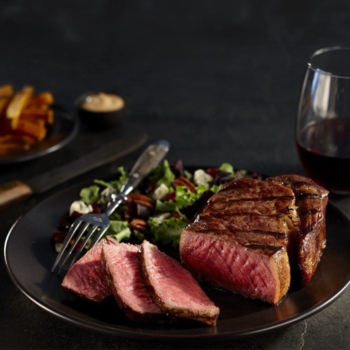 This famous boneless cut comes from the short loin. Its marbling makes it tender, tasty, and perfect for cooking rare or medium-rare. A classic for the grill.