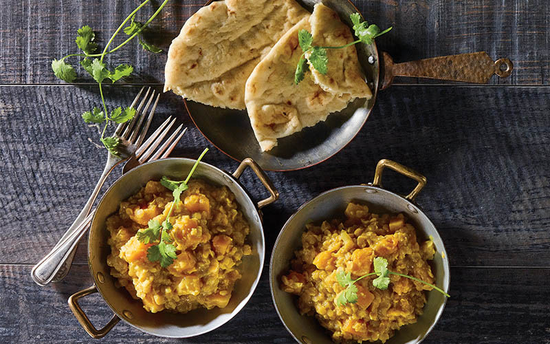 Les courges ne contiennent aucune matière grasse en plus d’être riches en vitamine A et en potassium. La courge musquée est à inscrire sur votre liste d’épicerie si vous souhaitez conférer à votre automne des arômes à la fois réconfortants et exotiques. Pour un souper indien express, concoctez un dahl à base de courge musquée. Coupez la courge en petits cubes et faites-la revenir avec des oignons. Ajoutez ensuite de l’ail, du gingembre ainsi que des épices. Il ne reste plus qu’à laisser le tout mijoter dans du lait de coco et du bouillon de légumes pendant une vingtaine de minutes. Après quoi un dahl succulent est prêt à servir!