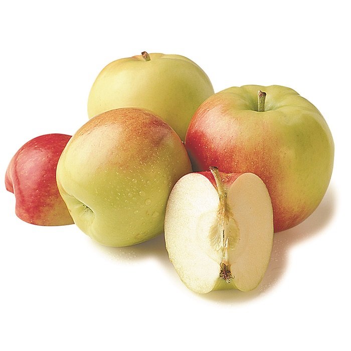 Sous la pelure de cette grosse pomme se cache une chair croquante mi-sucrée, mi-acide, parfaite pour préparer des tartes, car elle garde sa forme à la cuisson.