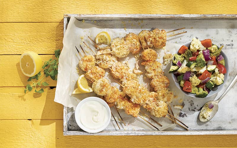 Les pétoncles et les poissons blancs seront délicieux en brochettes avec des légumes et une marinade acidulée. Josée Di Stasio nous propose sinon d’en faire des brochettes croustillantes panées avec des croustilles et servies avec un tzatziki bien frais. Pour réussir la cuisson des poissons au BBQ, il faut s’assurer de les griller rapidement, sans quoi ils deviendront durs sous la dent!